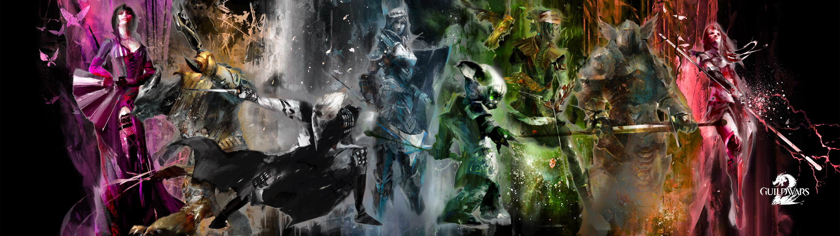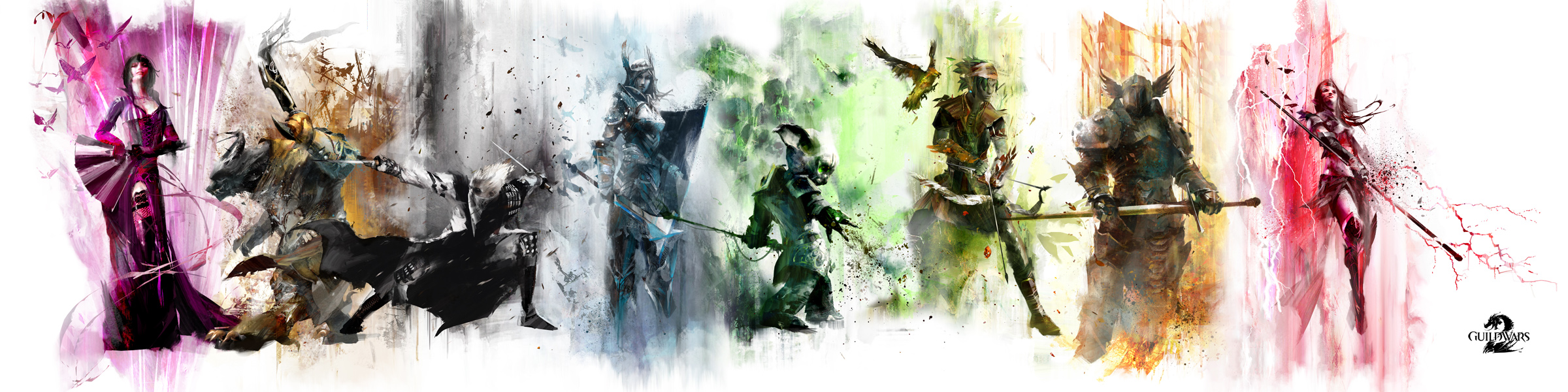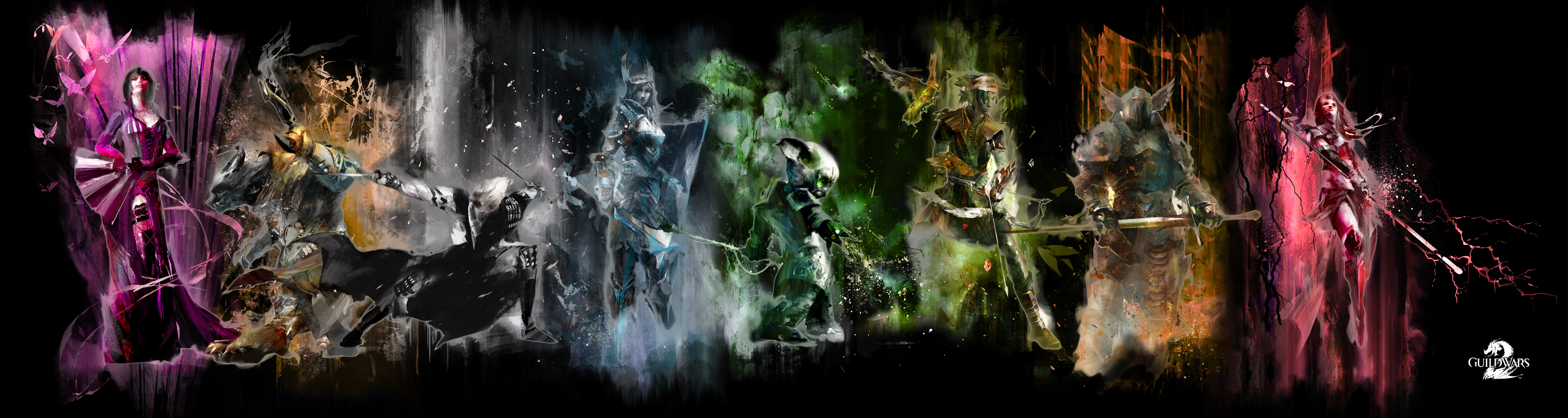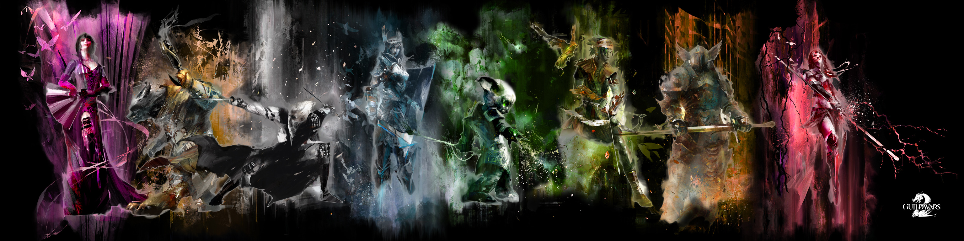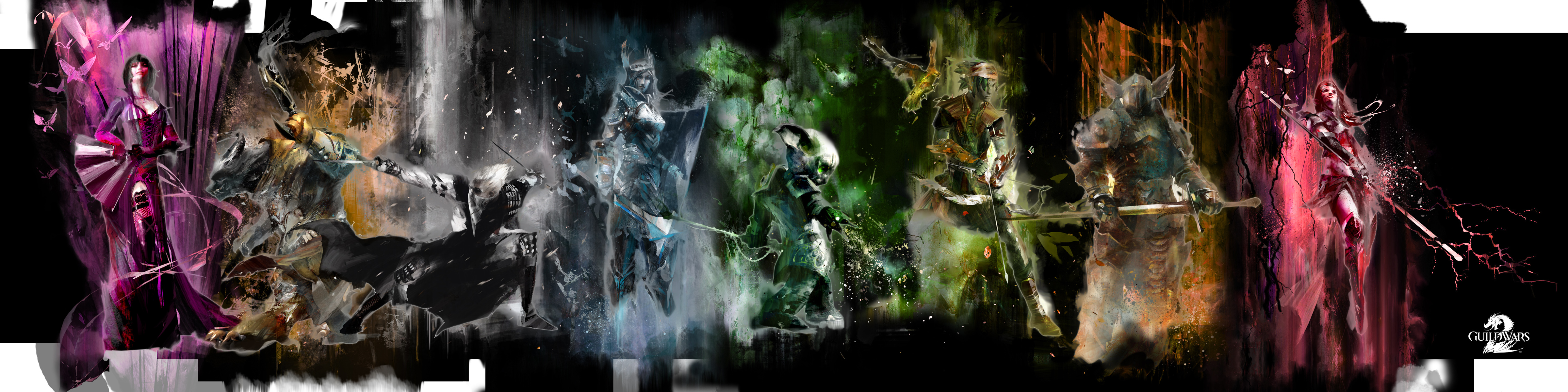 Can't decide which Guild Wars 2 profession you like best? Have them all! These were designed to fit on dual monitor setups.