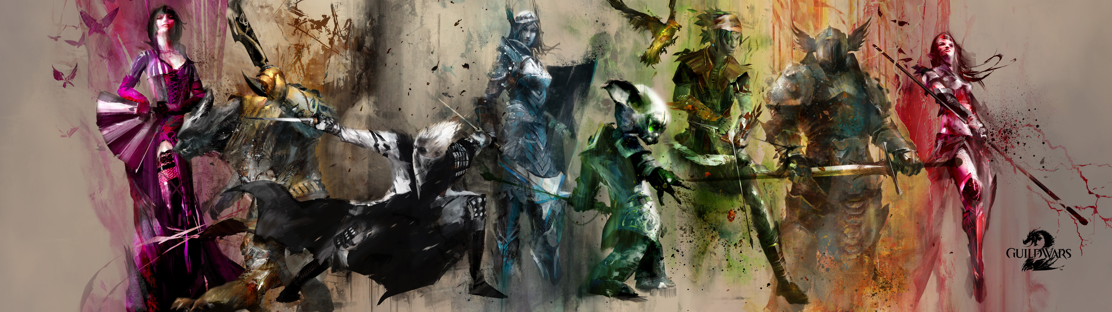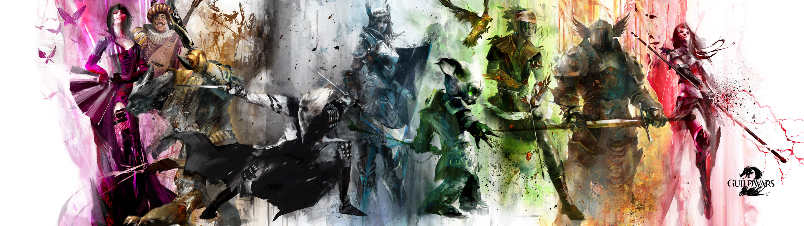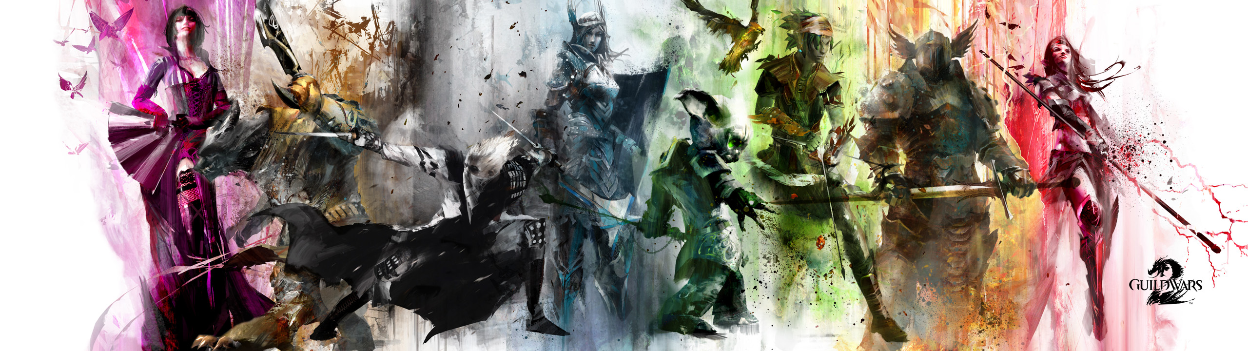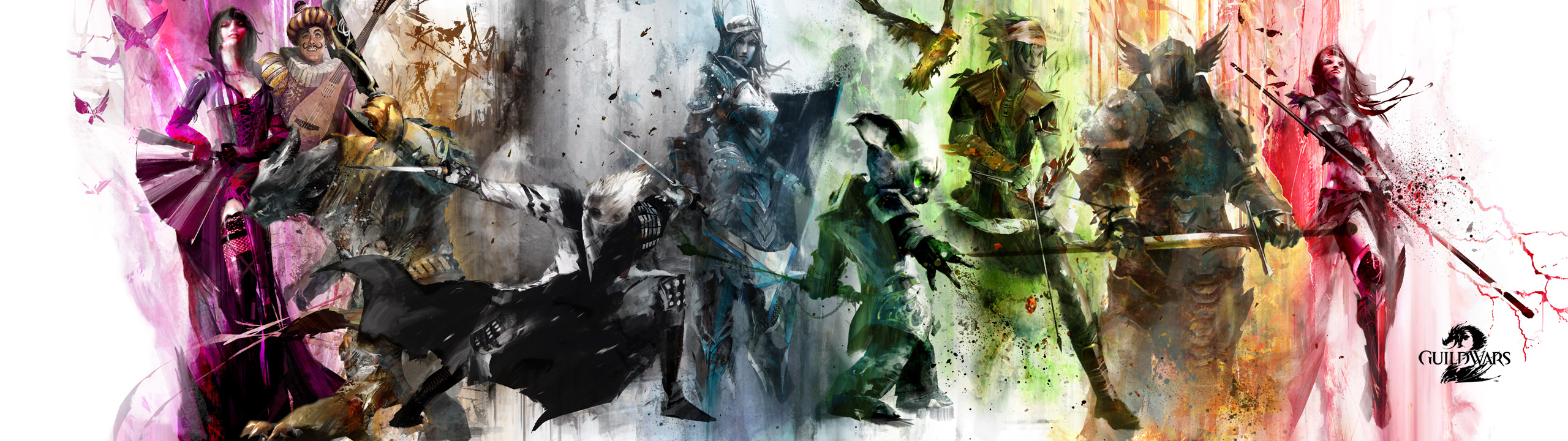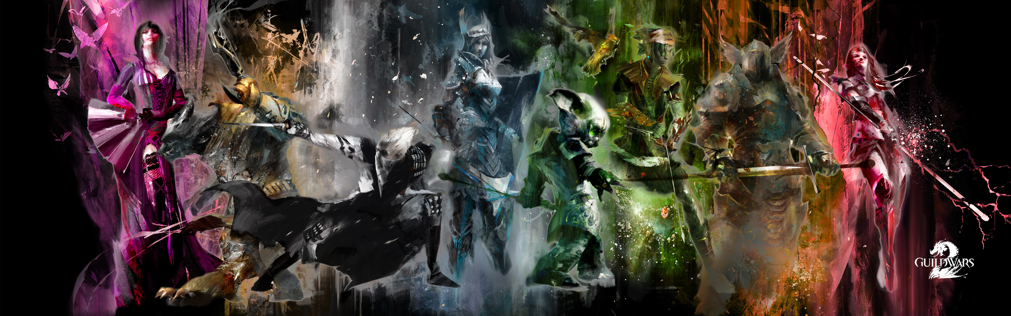 Can't decide which Guild Wars 2 profession you like best? Have them all! These were designed to fit on dual monitor setups.